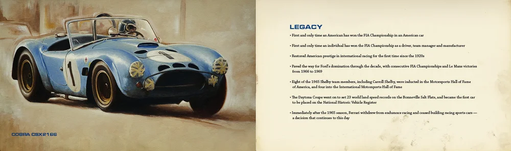 Design and branding exploration to investigate the possibilities of a Shelby/Harley-Davidson relationship. Commissioned by Shelby Licensing, RDLA recommended that Shelby and Harley go beyond merchandising to combine the two American icons in a way that would truly open each brand to the audience of the other. The result was a transformation of Harley's existing product line via modifications based on Shelby's heritage, and our own deep knowledge of vintage motorcycle racing. Use of existing Shelby elements would allow Harley to modify the bikes in house, or via mod shops experienced at turning Mustangs into performance-tuned Shelby cars. The branding was then extended to exterior colors, materials, riding gear, apparel, helmets and gloves. All illustrations were created by RDLA's in-house artist, Hans Sures.
